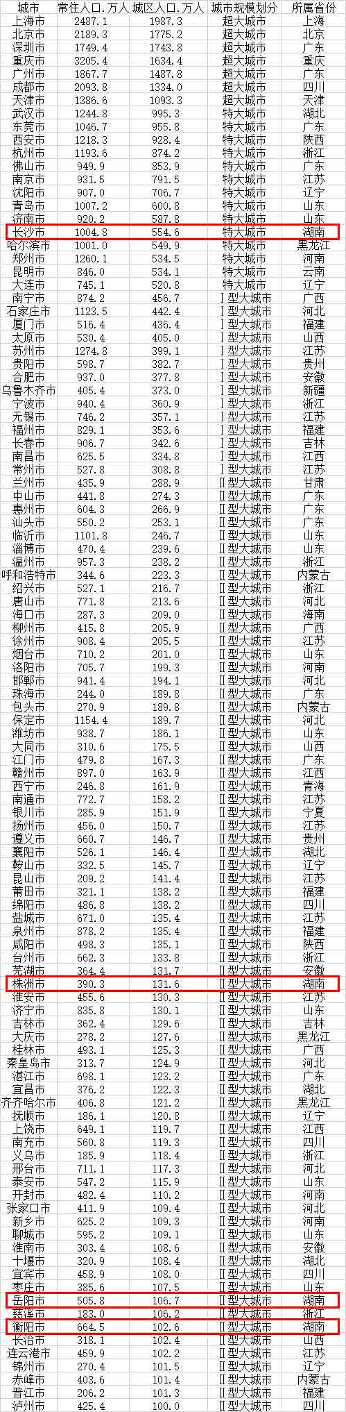 再次,统计口径的因素影响。地级及以上城市的城区人口数据不包括下属县级市、县的城区人口数据。因此,虽然有一些地级市城区和下辖的县市城区已经连片发展,但是这些下辖的县市城区人口均不纳入地级市城区人口统计。