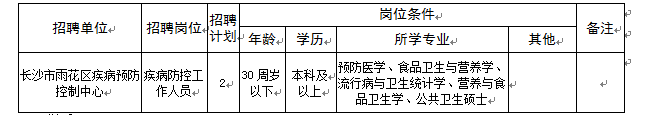 长沙市雨花区疾病预防控制中心招聘工作人员